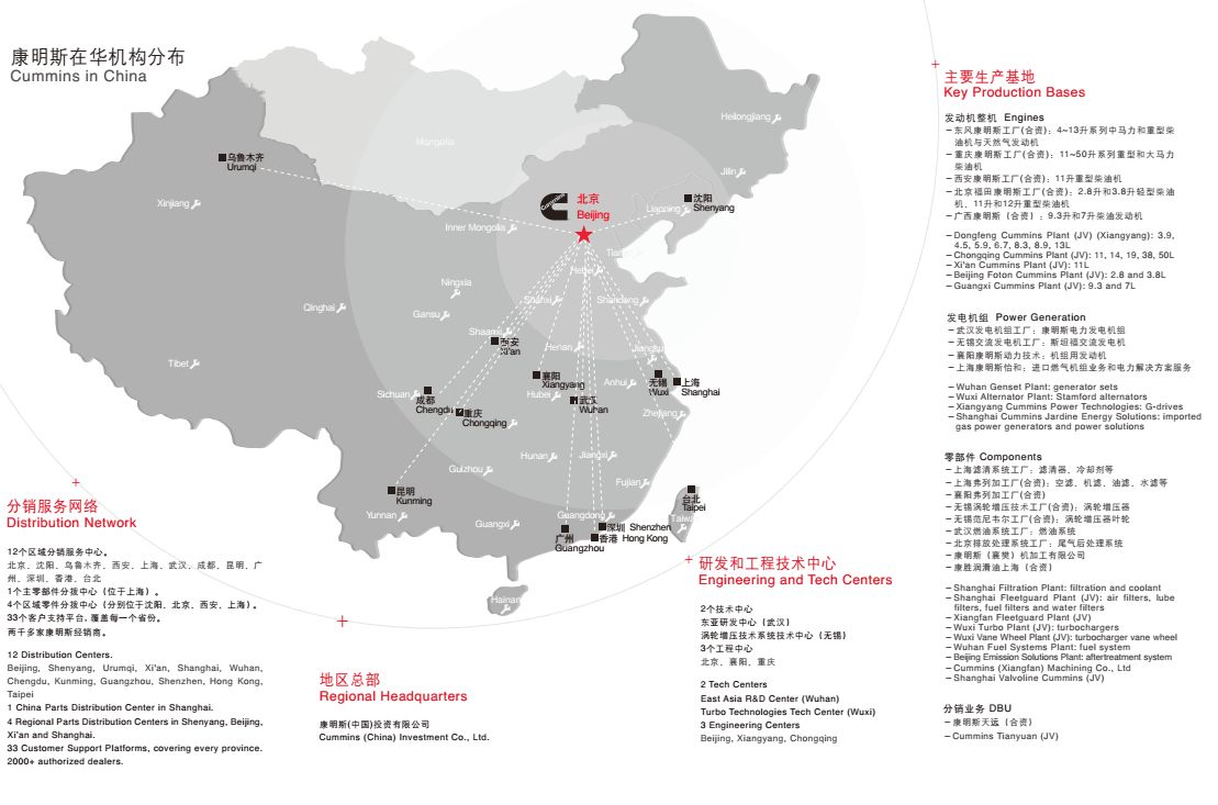 康明斯服务区域:全国各市县地区